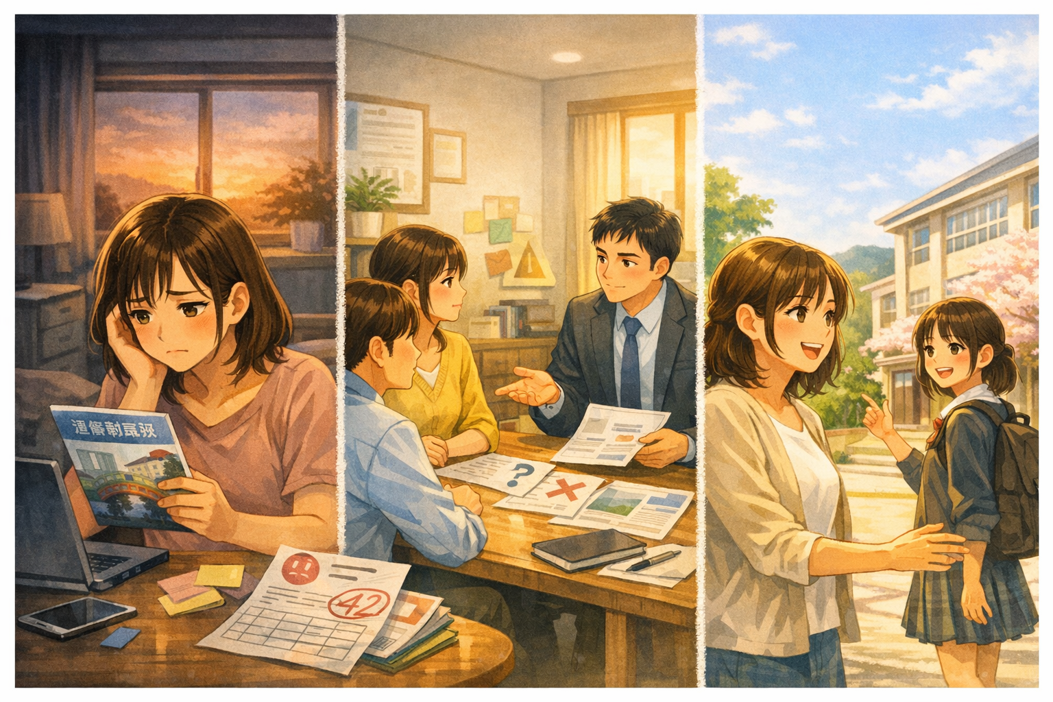 毎朝つらそうにしている姿を見るたびに、このまま今の学校へ通わせるのが正解なのか分からなくなる。でも、通信制高校へ変えてもしんどくなるなら意味がない。親としては、できるだけ後悔しない選択をしたいはずです。